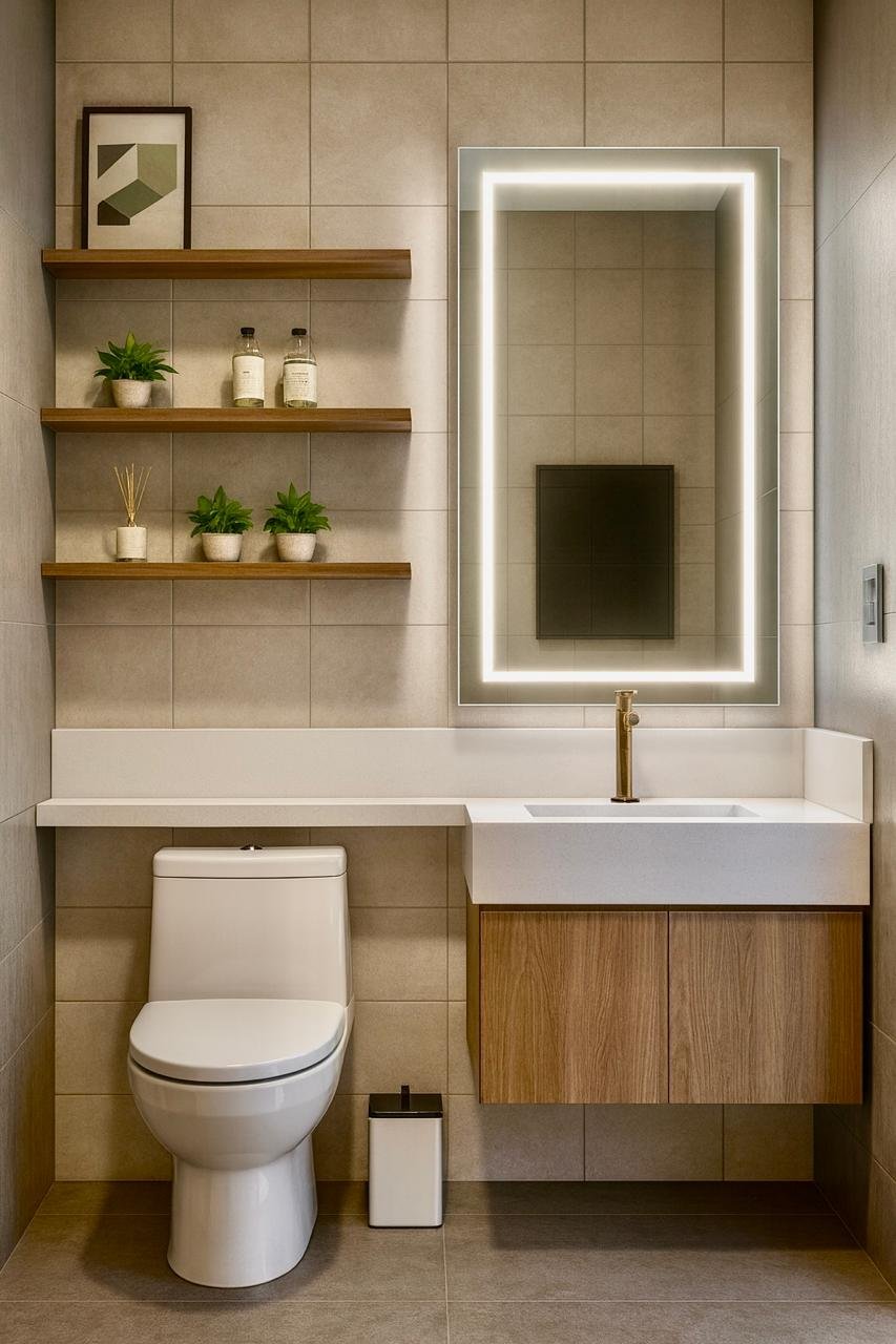 Neste projeto, realizamos a reforma dos banheiros com o objetivo de modernizar completamente os ambientes. Aproveitamos os revestimentos que ainda estavam em bom estado, integrando-os de forma estratégica a uma nova proposta contemporânea.