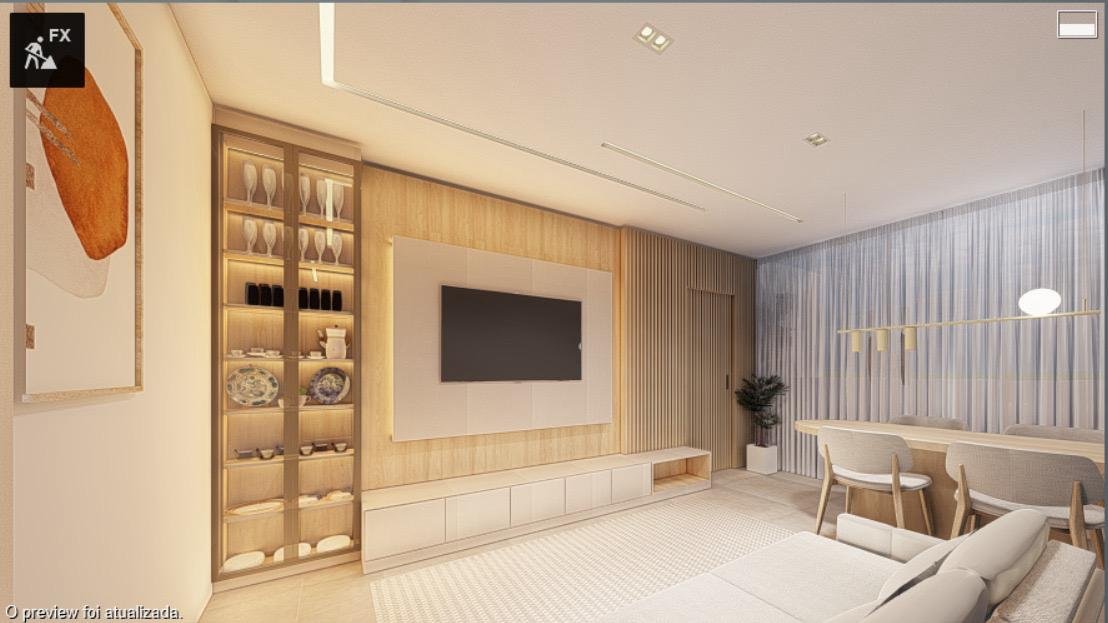 Neste projeto, desenvolvemos o layout da sala de estar e do home office com foco em funcionalidade e integração visual. O objetivo na sala era criar uma sensação de amplitude, ao mesmo tempo em que delimitamos sutilmente os espaços de uso público e privado.